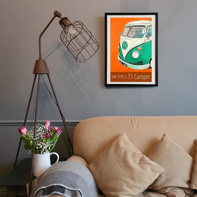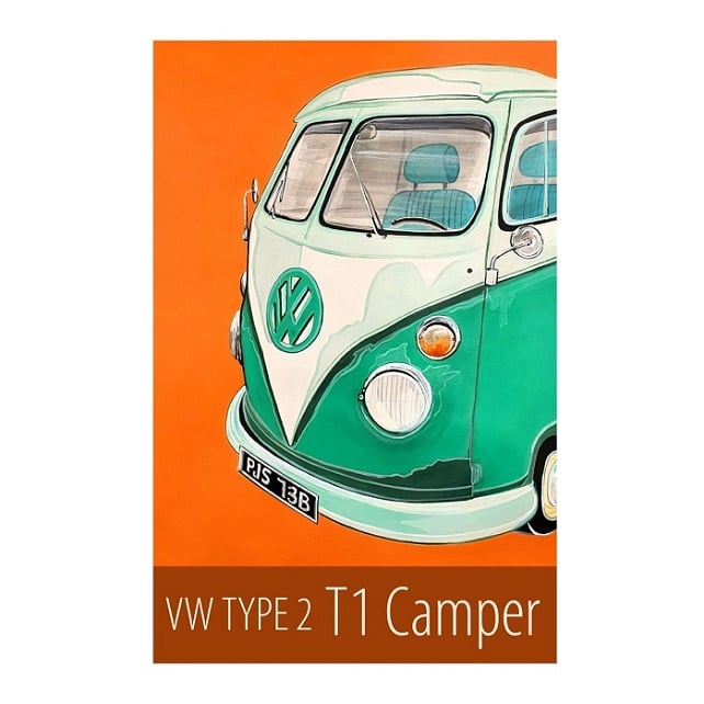 A contemporary poster print of the iconic VW T1 Camper, the 'Splittie', from my own original acrylic painting.
