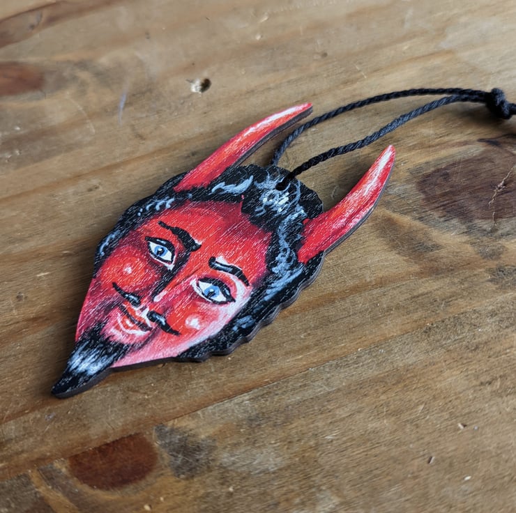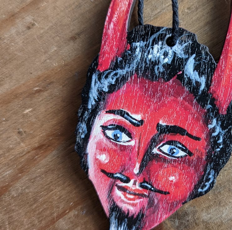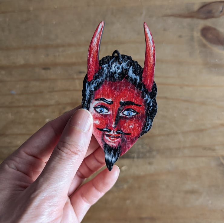 Meet Marcello the devil. He is a dashing wooden hanging ornament who would look marvellous with your Halloween decor, or display him all year round too!