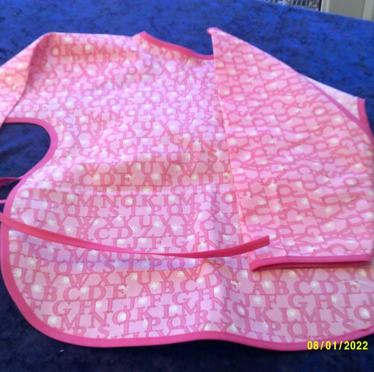 Pink Alphabet Sleeved Baby Cover Up Apron