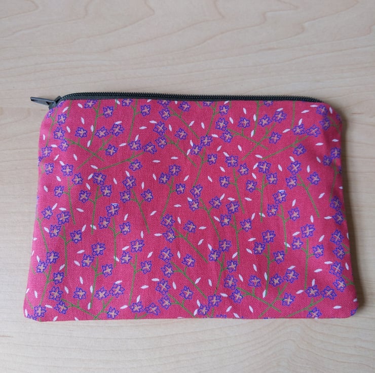 This item measures approx 6" (15cm) by 4.5" (11.5cm). It is fully lined but doesn't contain any inside pockets.