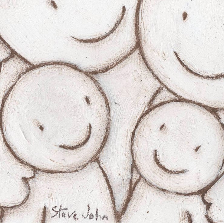 I've been creating Hugs Artworks for around 10 years, and each one is unique and different. I rough out the idea first in pencil, draw the outlines using brown pastel sticks, then paint white acrylic paint UP to the outlines, so the outlines are actually on the bottom, not the top.