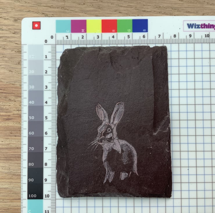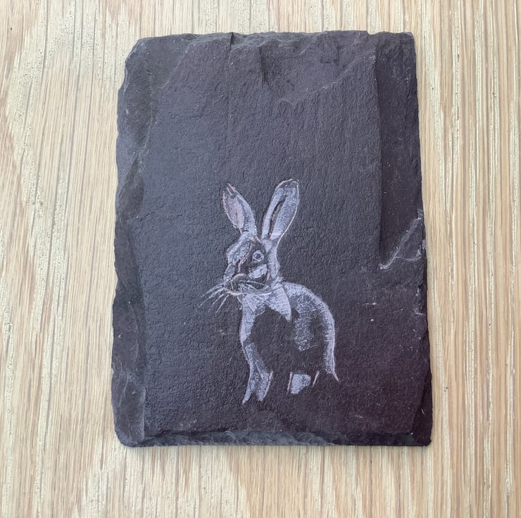 Just the cutest little hare. This picture is carved onto a piece of slate. It is provided with the display easel which is included in the price.