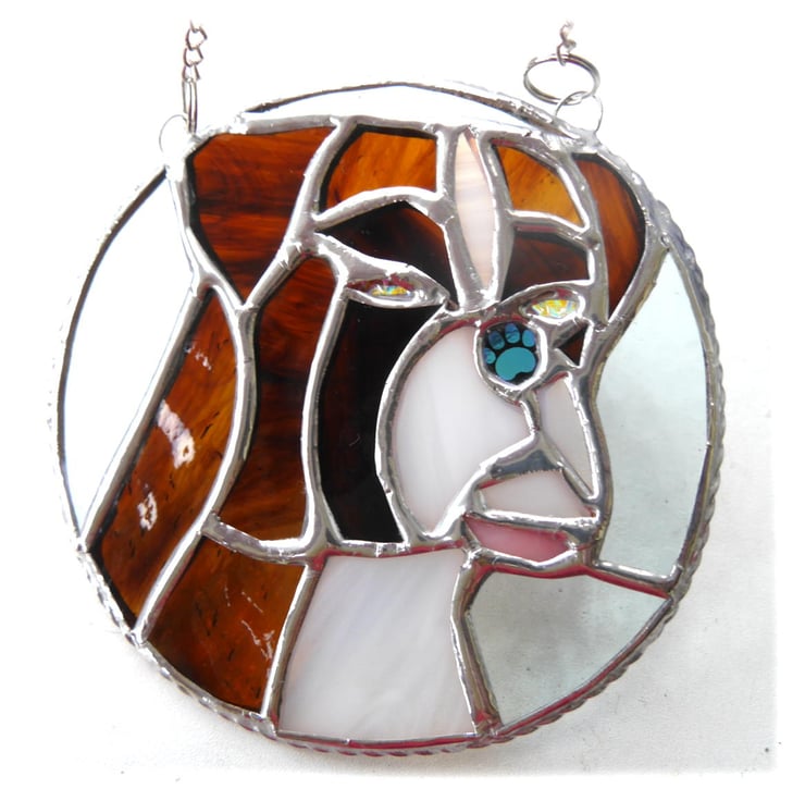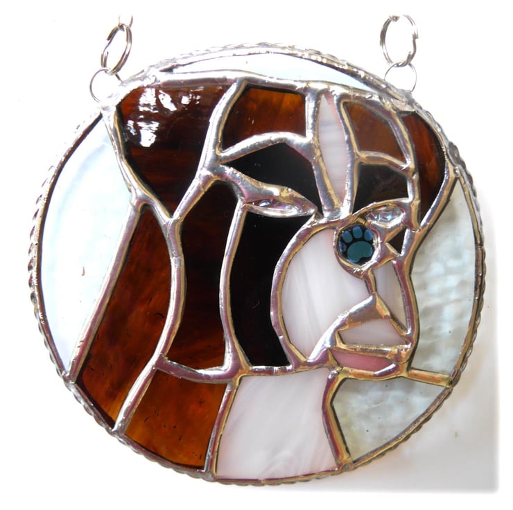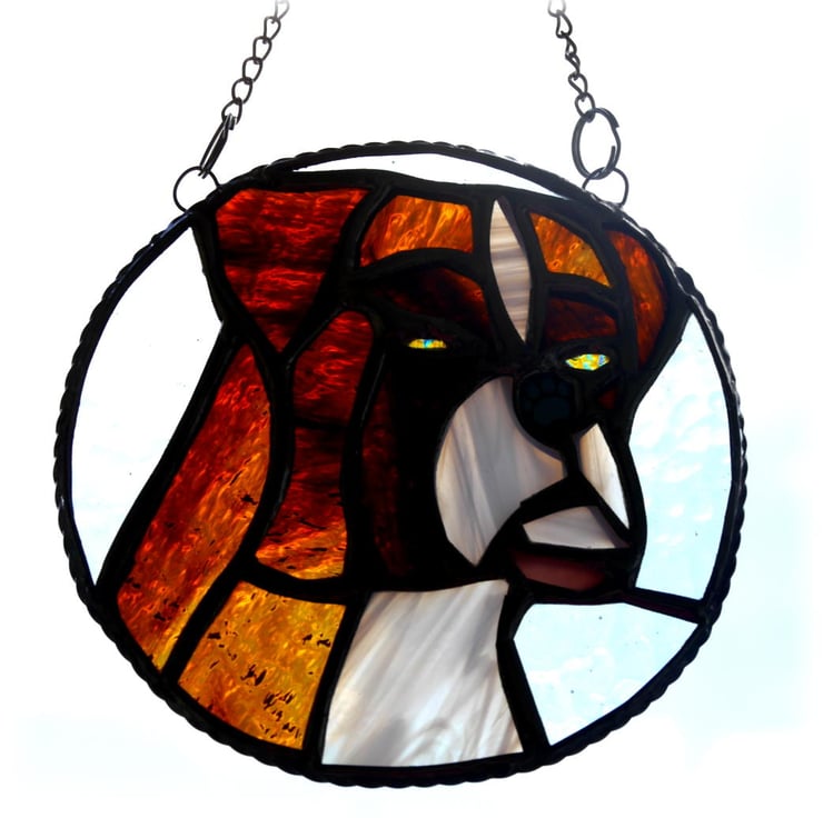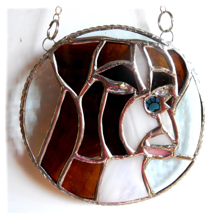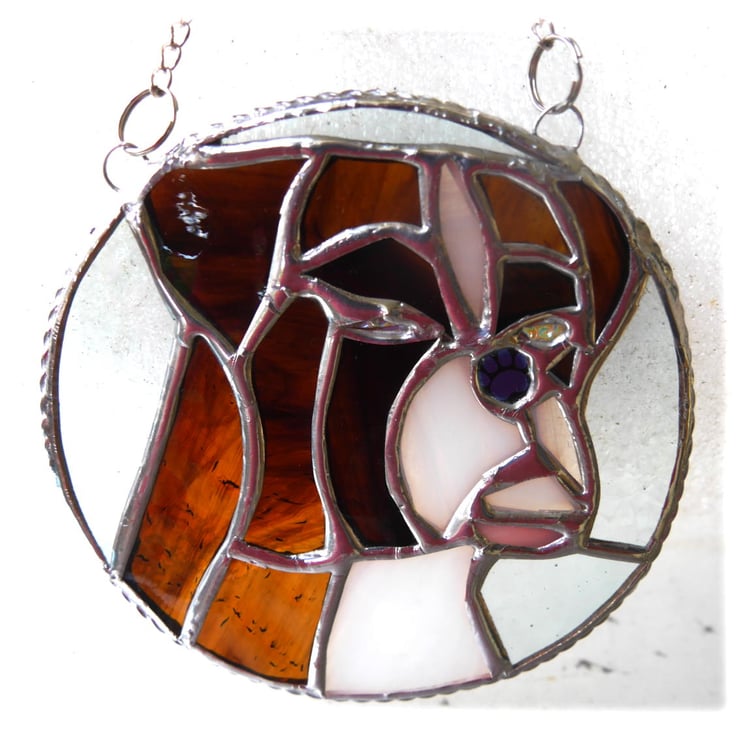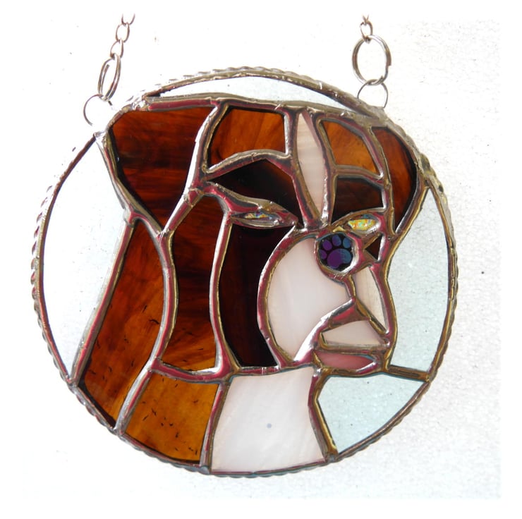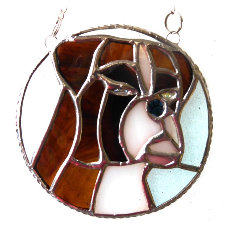 Boxer Dog Suncatcher Stained Glass Brown 012
