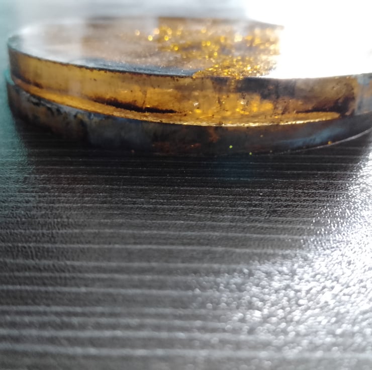 When it comes to making coasters, I love to experiment and get creative. I like to put a few drops of each pigment into the silicone mould and give it a mix around, before pouring in the glittery resin.