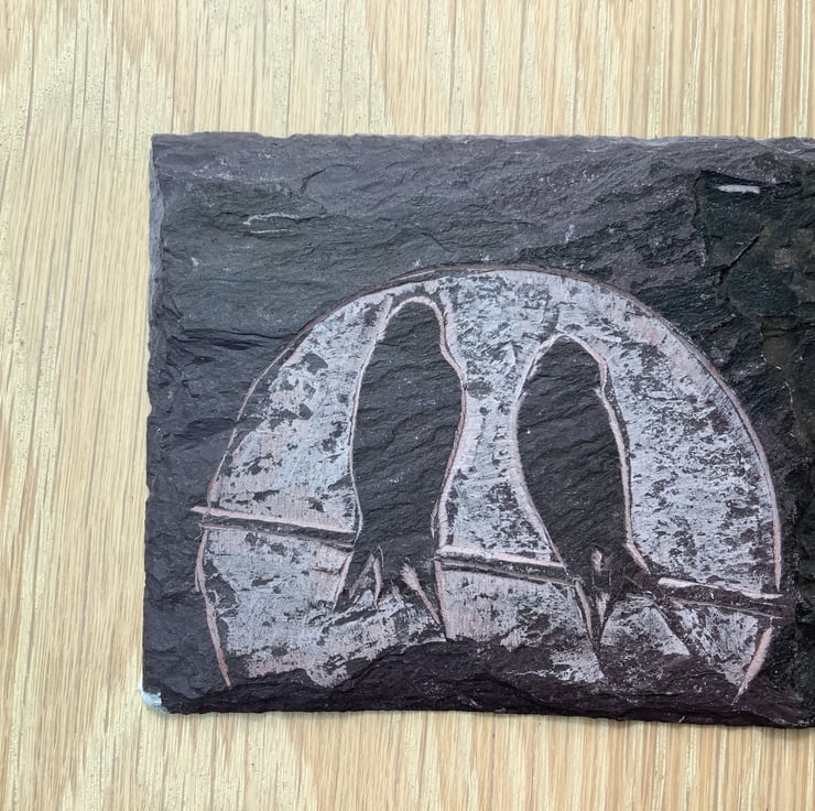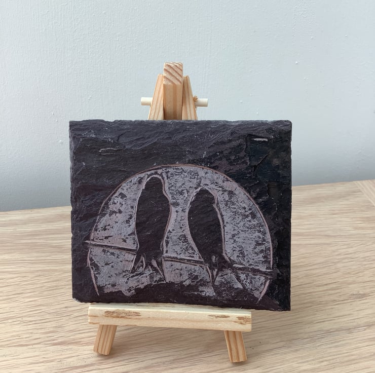 Two birds in silhouette in the moonlight - this picture is carved onto a piece of slate. It is provided with the display easel which is included in the price.
