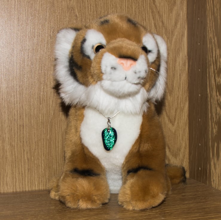 It's a teardrop shape that has a wonderful sparkle to it. It measures approximately 2.5 cm from top to bottom and is 1.5 cm at its widest. It weighs in at around 10 grams including the chain. The chain is 20 inches in length. You can choose between a silver-plated or sterling silver chain at checkout.