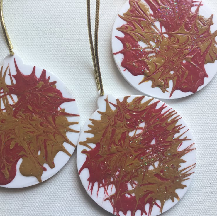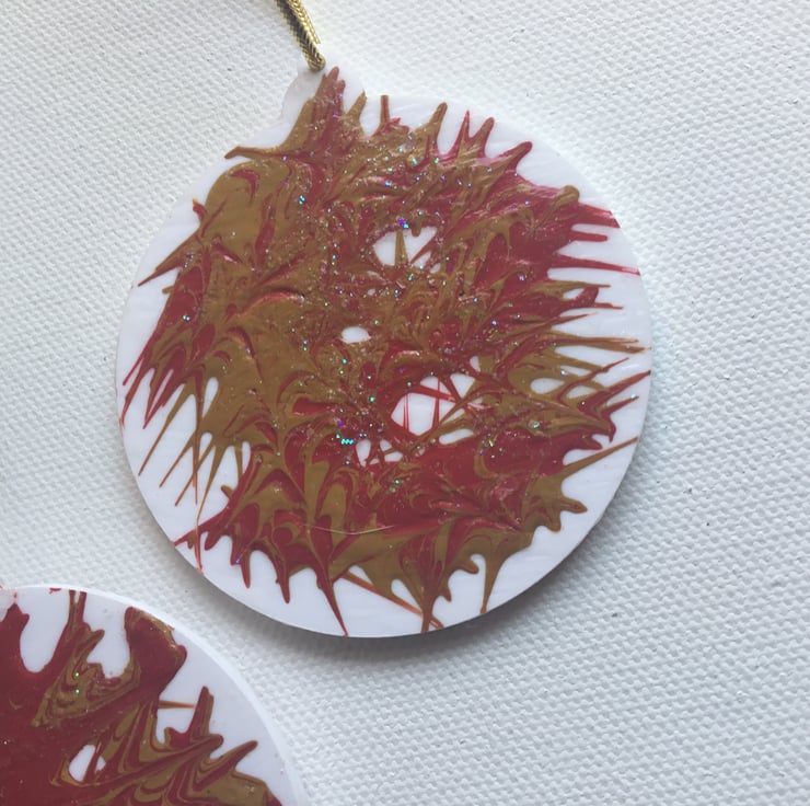 Due to the technique used (poured paint technique), each bauble is completely different.