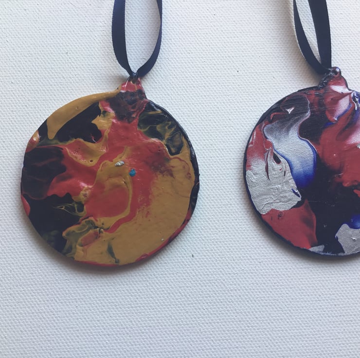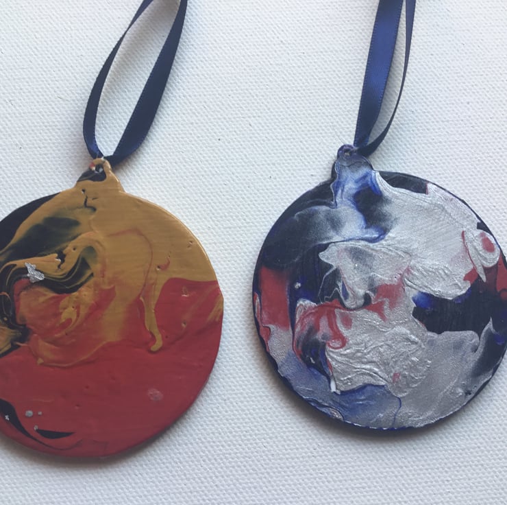 I have used the poured paint technique making each bauble individual.