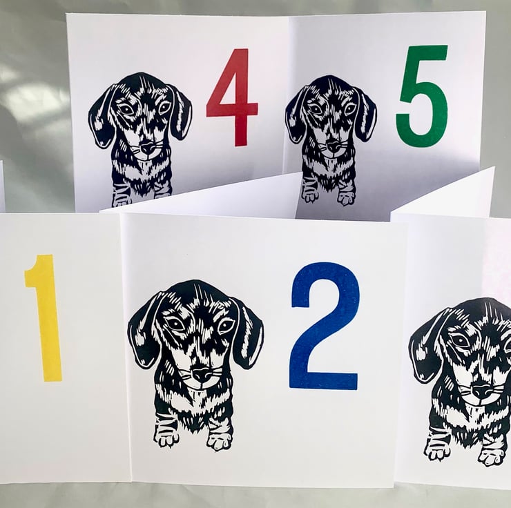 I have sketched and then cut these popular animals out of Lino to handprint onto cards. I also used my lovely new wooden printing blocks to print the numbers on the Age 1-5 cards.