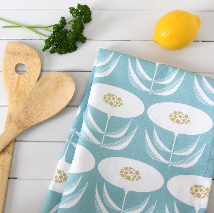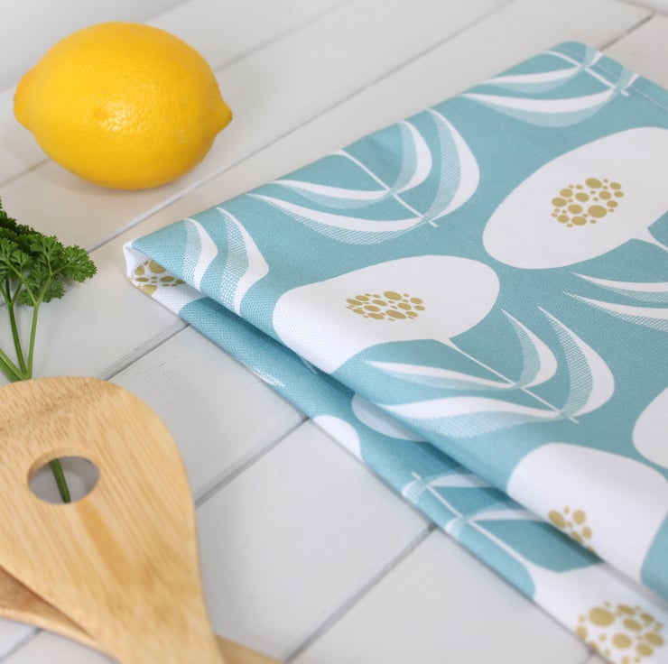Turquoise Blue Dandelion Pattern Tea Towel
