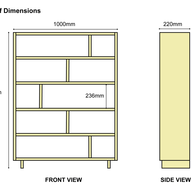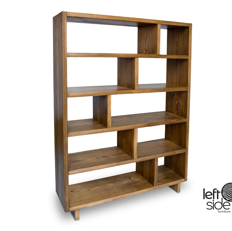 Crafted from premium grade pine this bookcase includes fixed shelves in a distinct offset configuration that make an attractive but solid unit. Ideal for books, family photos and ornaments the low design means the flat top surface provides additional display space. Four & five shelf versions are also available with different shelf spacing.