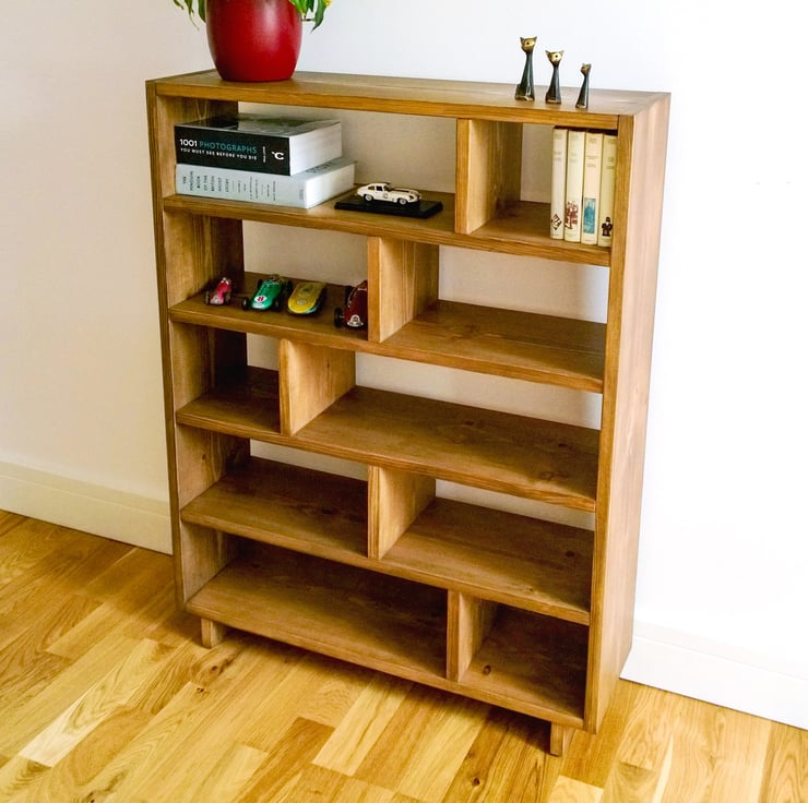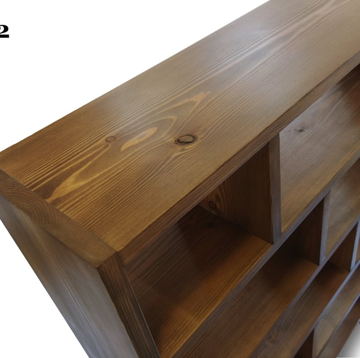 Picture 2 shows a version of the bookcase made for smaller items in medium finish.