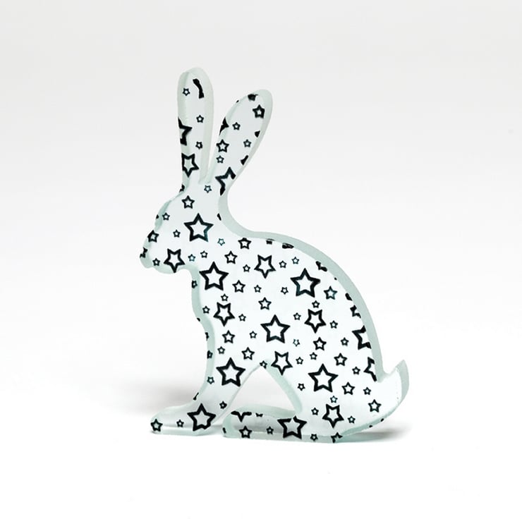 This little hare is made from one piece of chunky 10mm thick clear float glass that has been cut to shape using a water jet cutting machine.