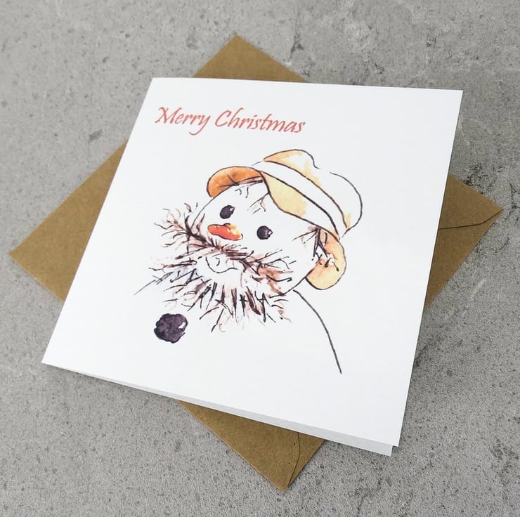 My eco friendly Snowman Beard Christmas card has been printed using my own original artwork on to100% recycled felt white 270g card which has a lovely textured finish.
