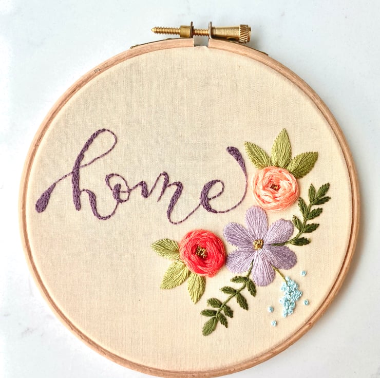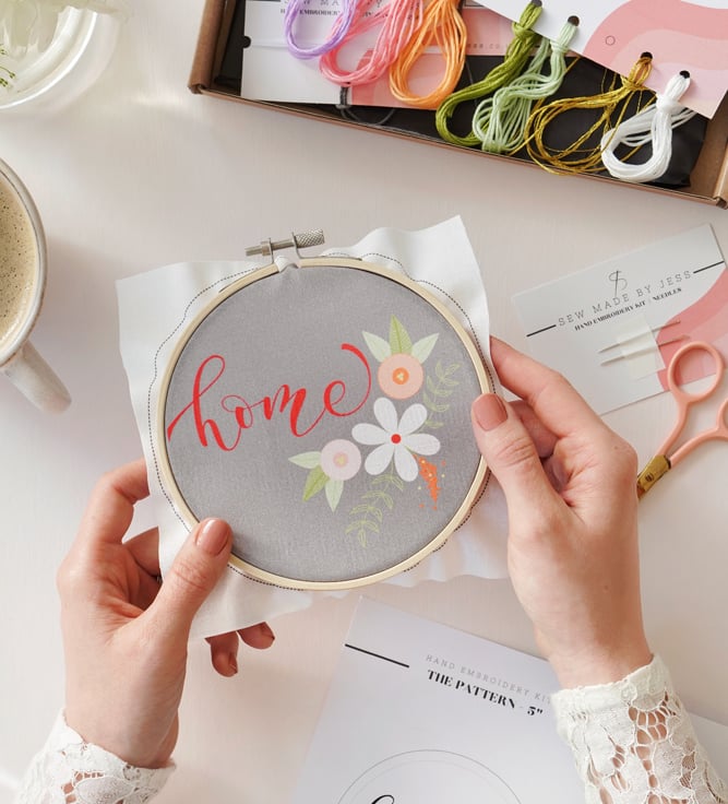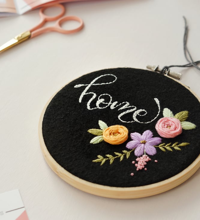 Whether you are a complete beginner or have past experience in hand embroidery, this kit will walk you through 5 common hand embroidery stitches whilst you create a beautiful 5" embroidery hoop wall hanging. Create this gorgeous floral design while learning a new skill or perfecting your existing talent.