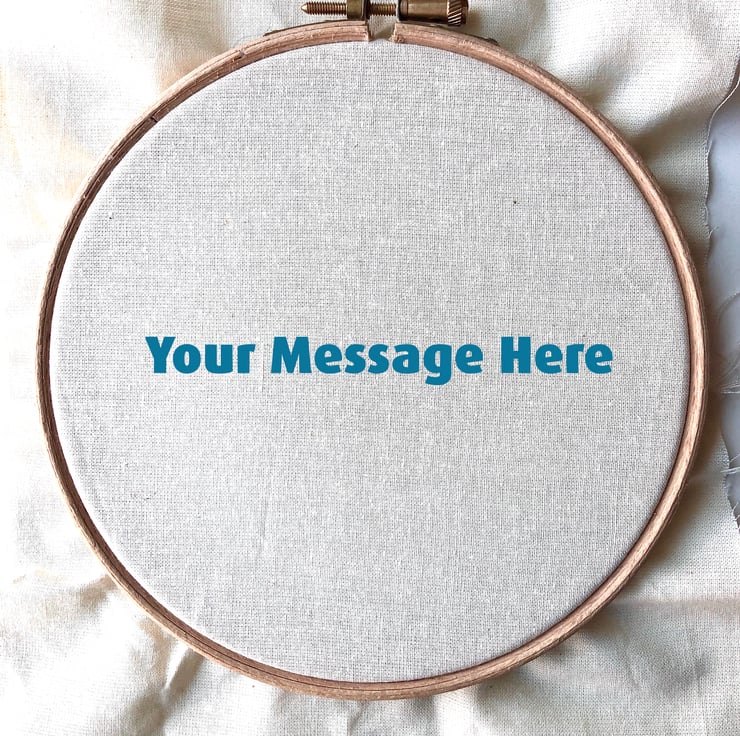 The example shown is stitched with cotton thread onto a cotton or calico fabric in a colour of your choice and framed in a bamboo hoop. The back is finished with grey felt. If you would prefer a custom hoop to the standard bamboo, I can provide these in black, gold or silver and they are available for an extra £1.50. To choose this option, please select the custom colour hoop size you would like.