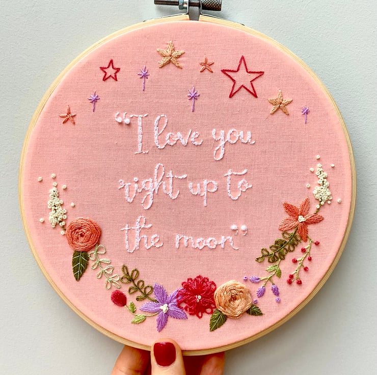 Each item is designed and then embroidered by myself, making every piece unique. Please send me a message or tick the personalisation options below, writing your preferred text and colour / size choices.