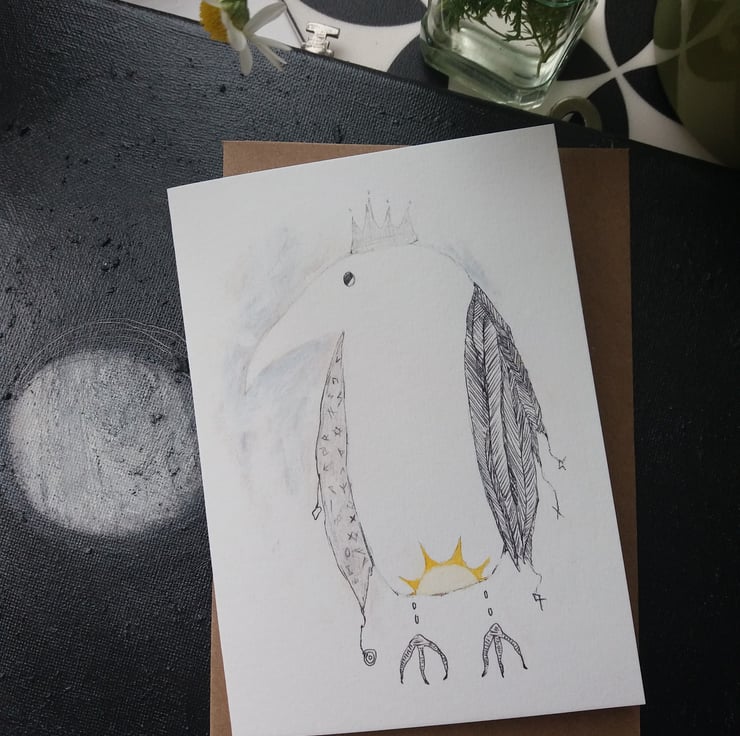 please note that although this is a printed card the little sun is handpainted later, with watercolour, so the shades of yellow may vary slightly to the images here.