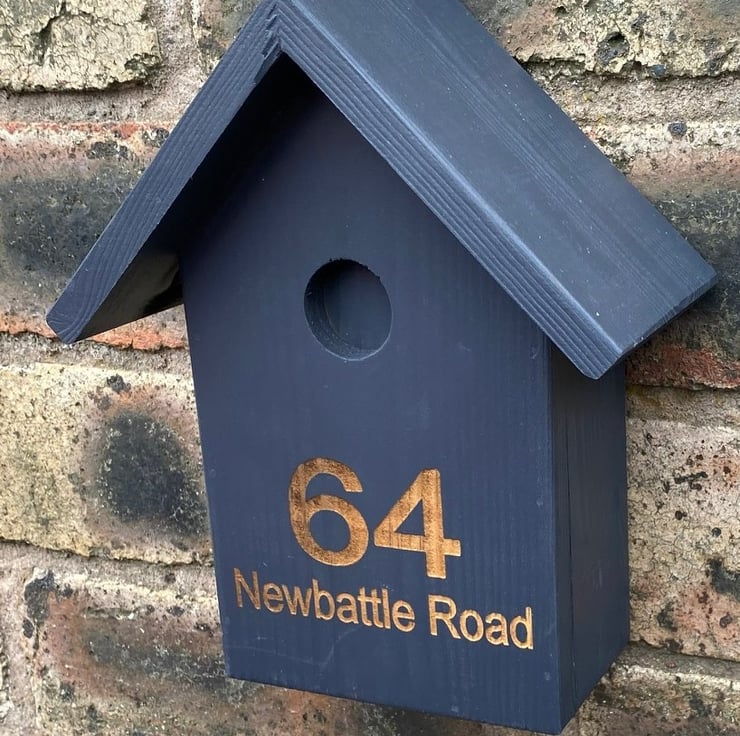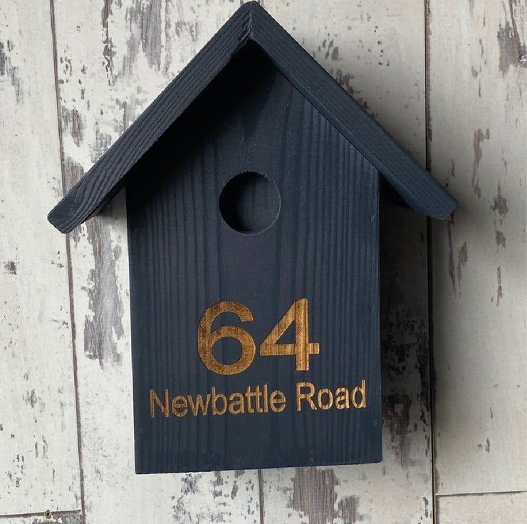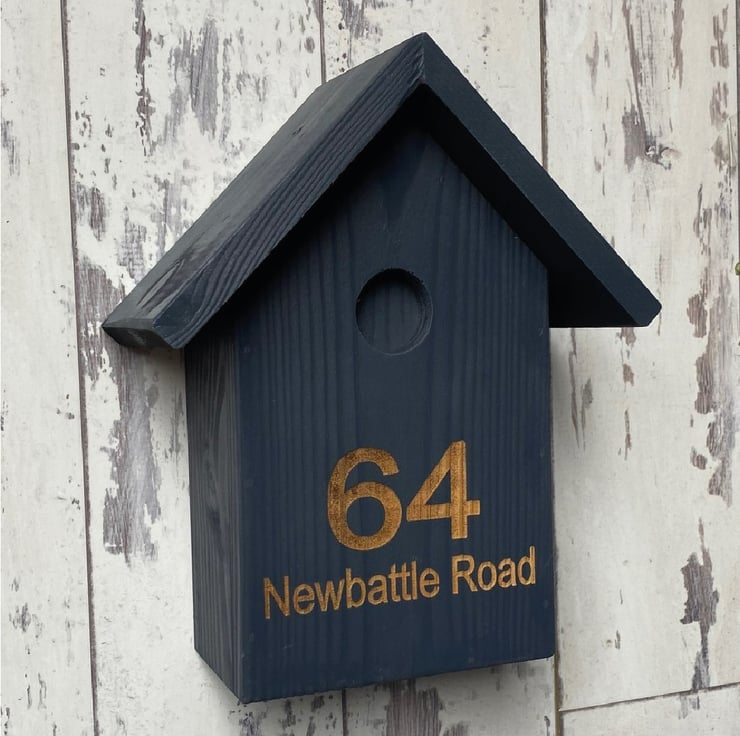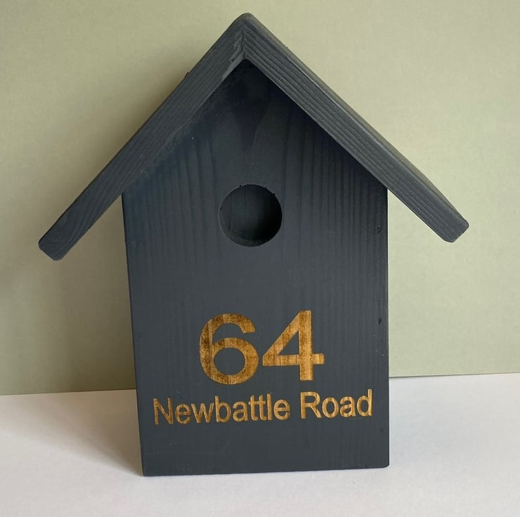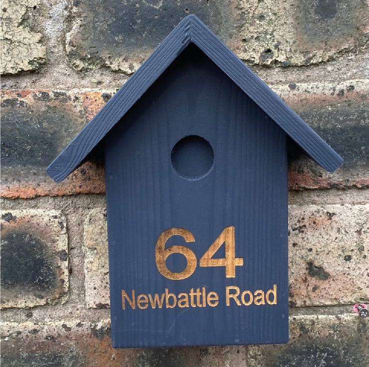 We have been asked many times over the years if we could make something on which to engrave door numbers etc. So here is our Door Number House! Inspired from our popular Bird Box design, this house can be engraved with your name, door number, street or any text you may prefer.