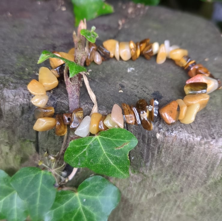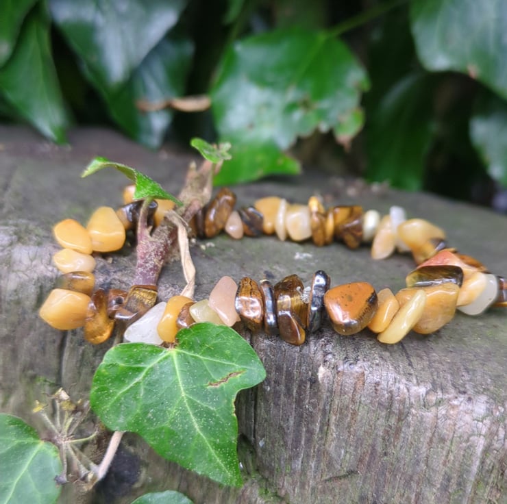 Tiger eye - inspires confidence and motivation, brings abundance and fortune, and is also very grounding It can help you work through challenges, and reduce fears. When faced with challenging situations, it helps you stay centred.