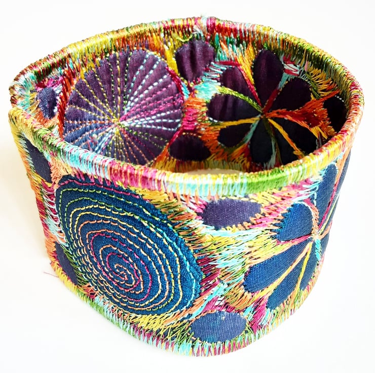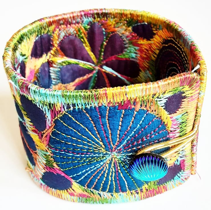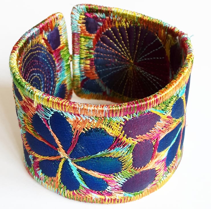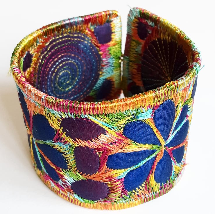 This is a handmade machine stitched fabric Stiched Silk Cuff or bracelet.