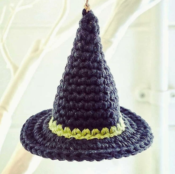 Crochet Witch Hat Halloween Hanging Decoration - PURPLE STRIPE