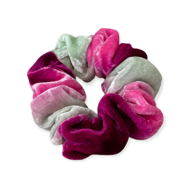 Hand painted silk and viscose velvet hair elastic, scrunchie.
