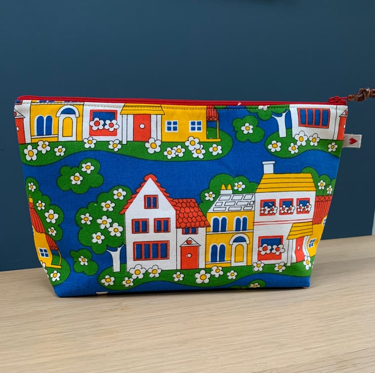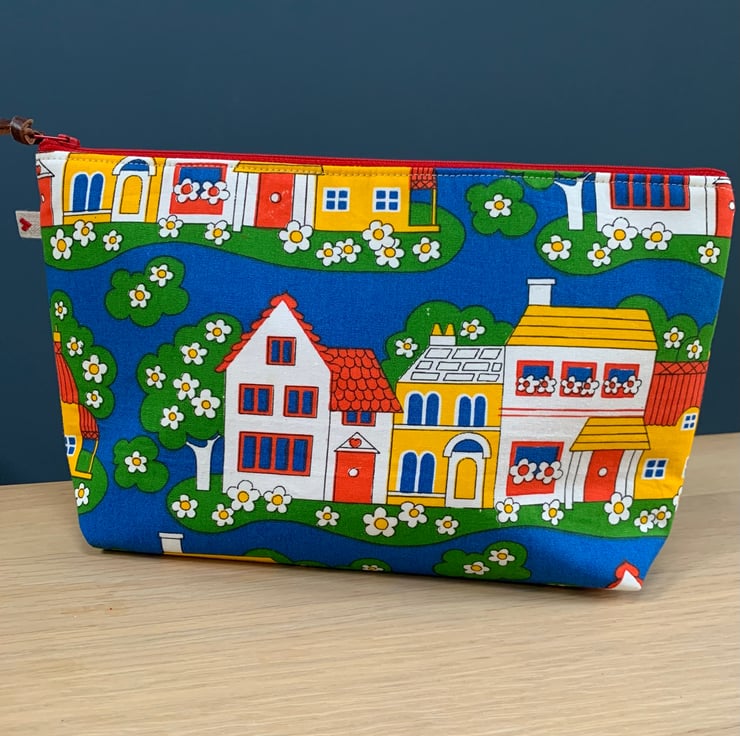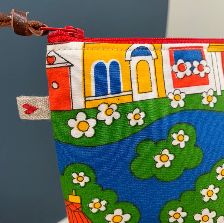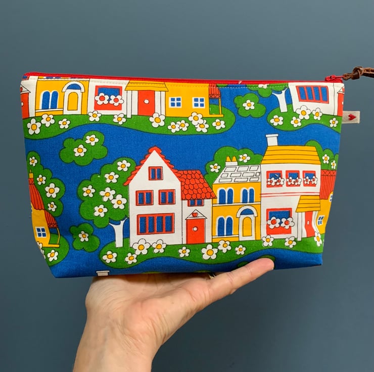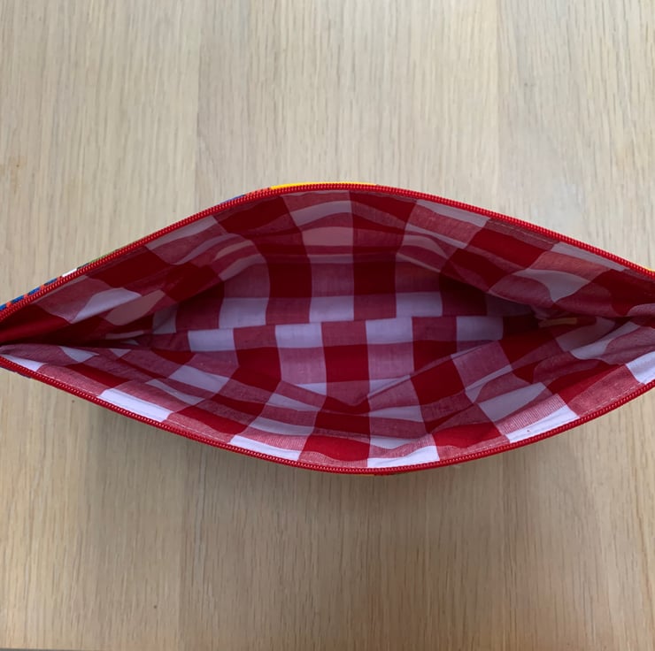 This spacious bag measures 28 cm across the zip by 18cm tall.