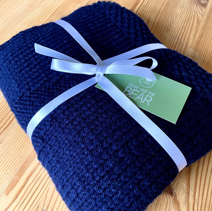 Knitted in acrylic yarn the blanket will keep your little one warm and cosy without irritating delicate skin. It has a beautiful soft feel but is also practical and can be popped in the washing machine when needed.