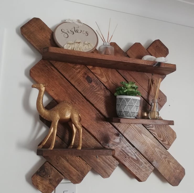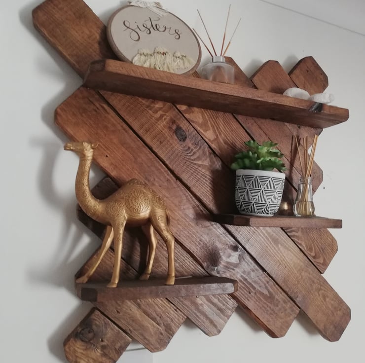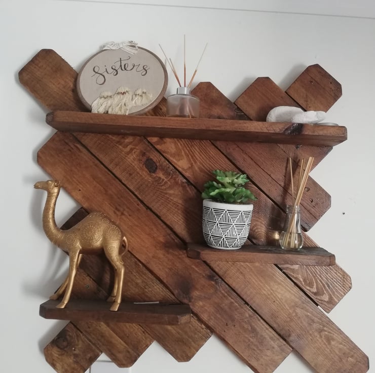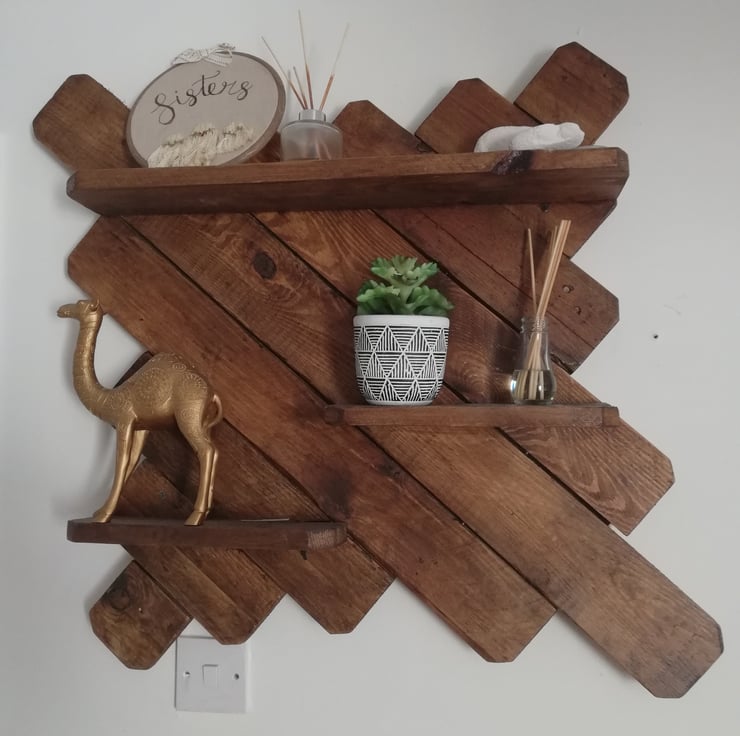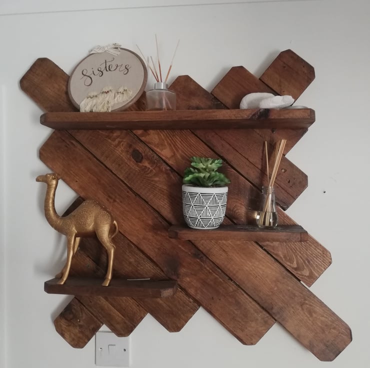 A large and very beautiful rustic piece finished in a warm oak stain. It has multiple shelves to hold pictures, candles and other decorative items. It's a lovely addditon to the lounge, or bedroom.