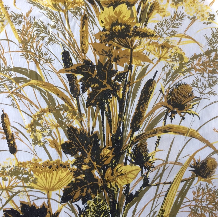 Botanical Seedheads Grasses Leaf Yellow Olive Green vintage fabric Lampshade