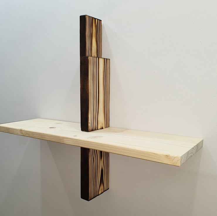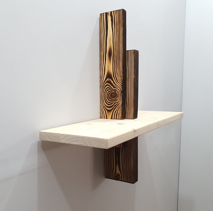 The shelf is emphasizing the beauty and uniqueness of the wood grain. The shelf was planed from natural wood and then sanded smooth. By request it can be finished with wax shade and buffed for perfect smooth surface.