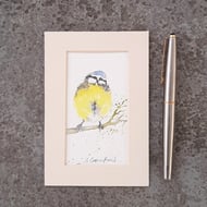3 inches square, made of quality watercolour paper, black card, mounted onto soft-white Card.