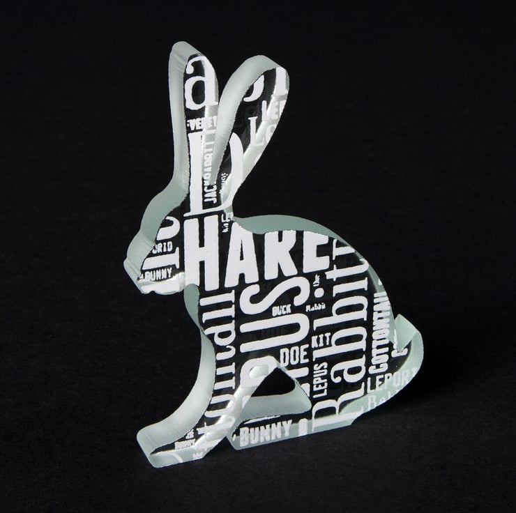 This little hare is made from one piece of chunky 10mm thick clear float glass that has been cut to shape using a water jet cutting machine.