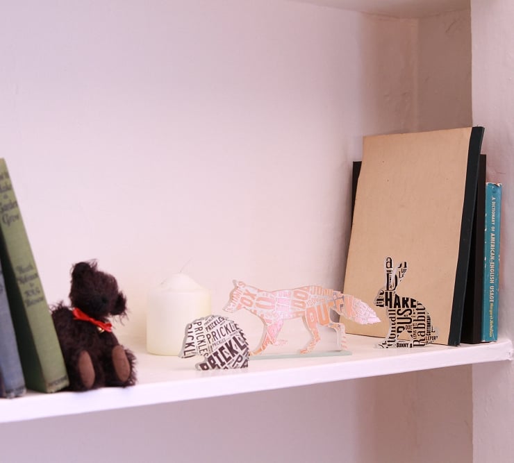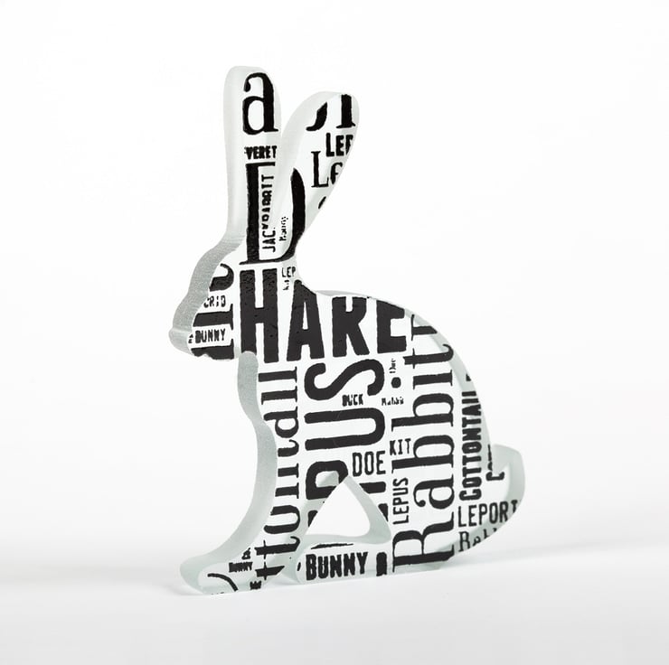 This print is inspired by word clouds of all the different words I could think of associated with my little glass hares.