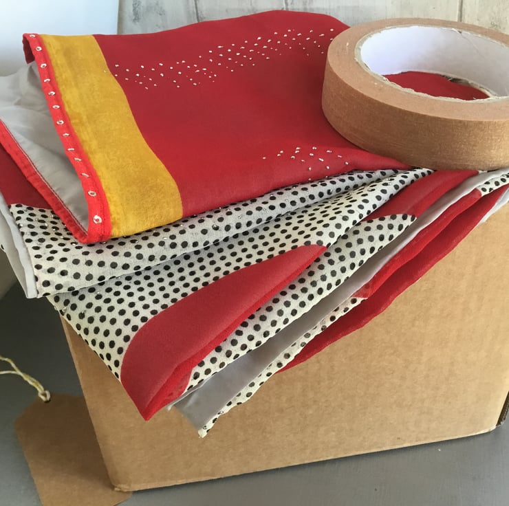 Please note that these are made from worn saris. Most are light polyester or chiffon. Whilst I will aim to use the best sections, there may be some small marks and they are unlikely to be exactly square.
