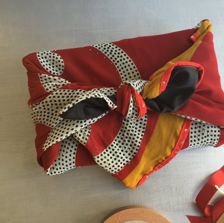 Japanese tradition is to wrap gifts in fabric using a technique known as Furoshiki. The fabric is knotted around the item and the result means that even a packed lunch or a bag of apples look inviting and special.