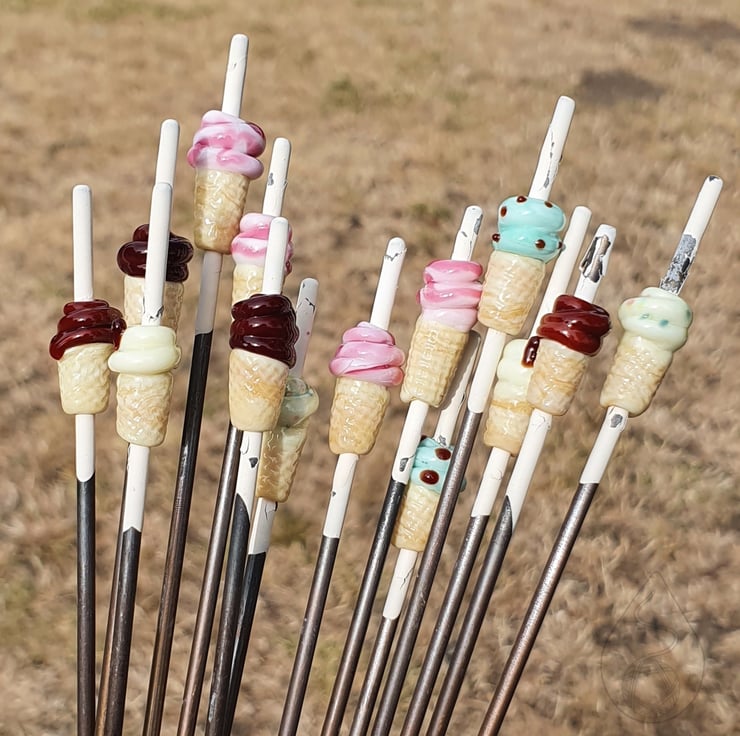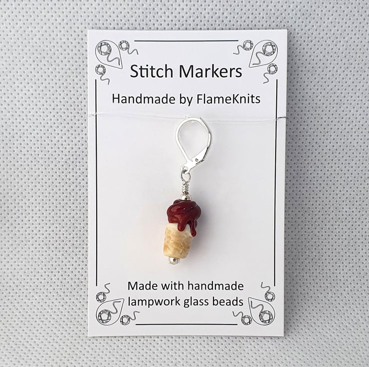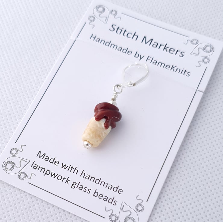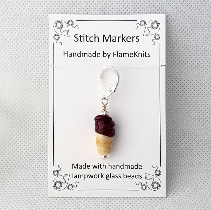 Each bead is individually formed and shaped by melting coloured glass rods in a flame. Due of the nature of working with glass, no two beads will ever be exactly the same so each bead is unique! I sometimes make my chocolate ice creams a little drippy like they are starting to melt. If you prefer an un-melted style, have a specific request or would like to pick from what I currently have available, send me a message and I'll see what I can do to help. Please have a look at the other "flavours" of ice cream stitch markers I have available.