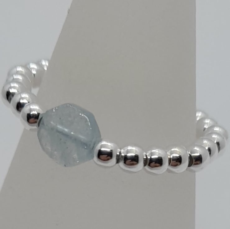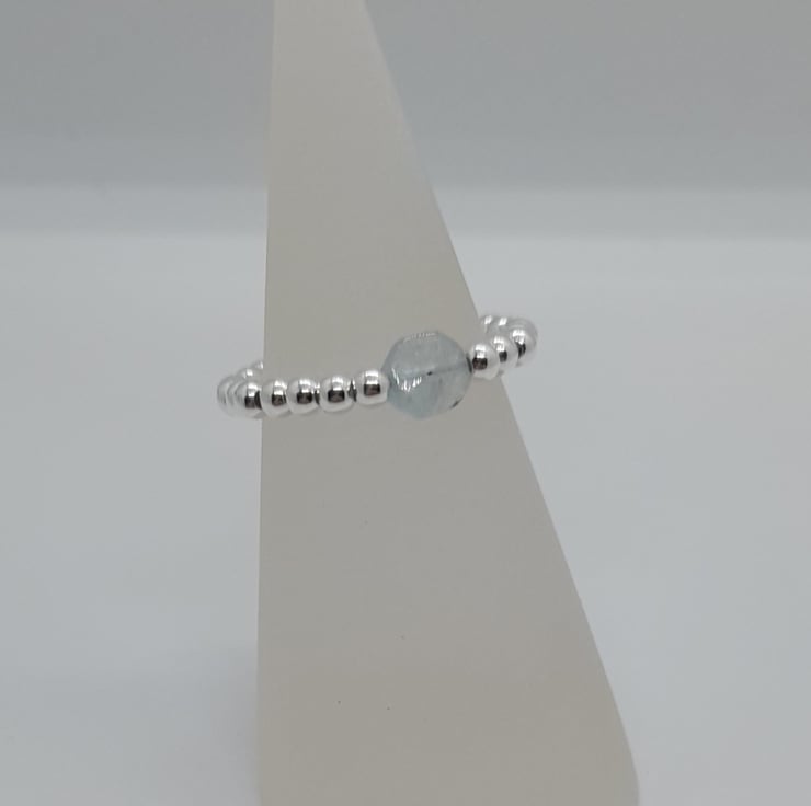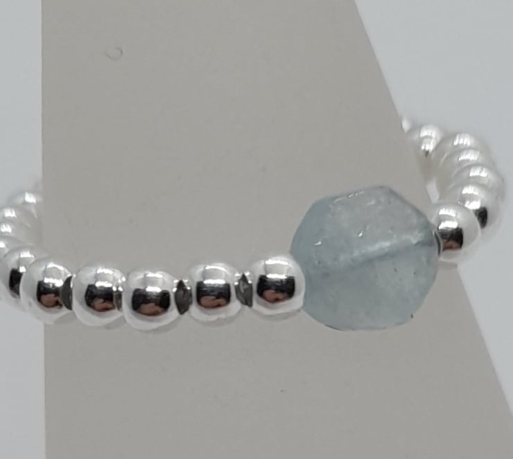 925 silver and Aquamarine stretchy ring fits up to size T.