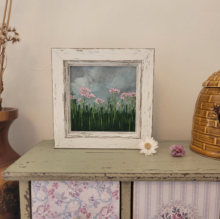 Hand embroidered meadow flowers on hand painted cotton background