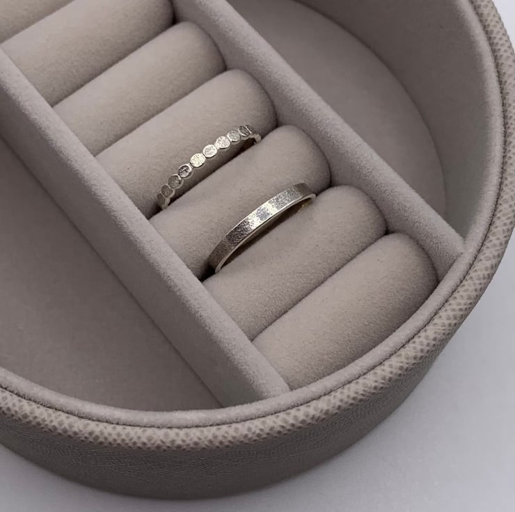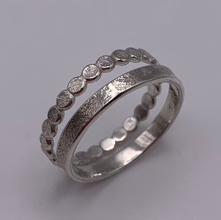 Made with recycled sterling silver the rings have a lovely soft textured finish on the outside surface. The rings have a slim profile making them perfect for everyday wear.