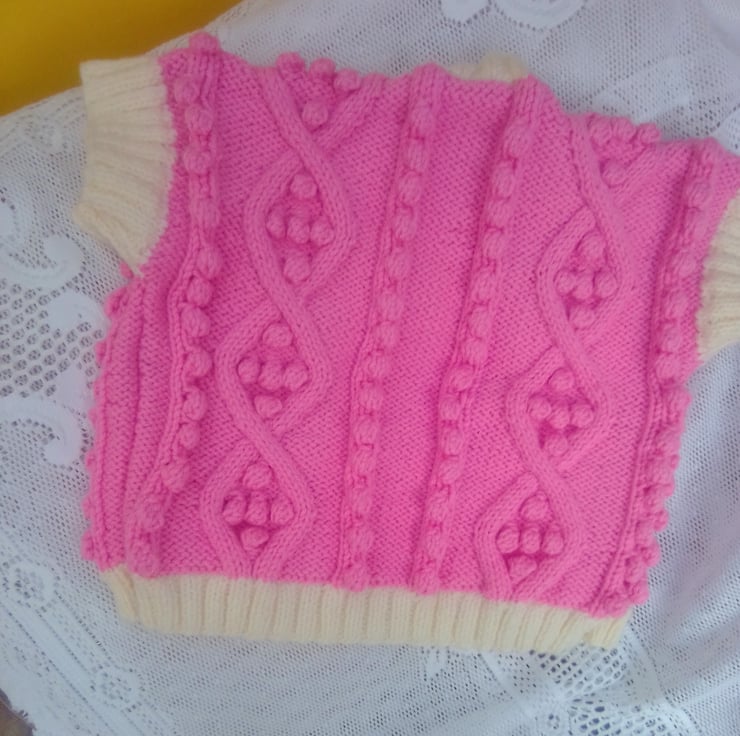This practical and pretty aran weight cabled waistcoat would make an ideal gift for girl up to a 11 years. It is made using acrylic aran yarn which gives it a bit of weight for some added warmth to the wearer. It is not currently in stock but it can be made for you in a size and colour of your choice, please see below for sizes available and indicate your colour choice when you order. The processing time is approximately 1 - 2 weeks to produce and post to you.
