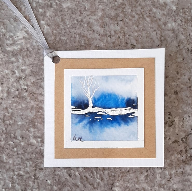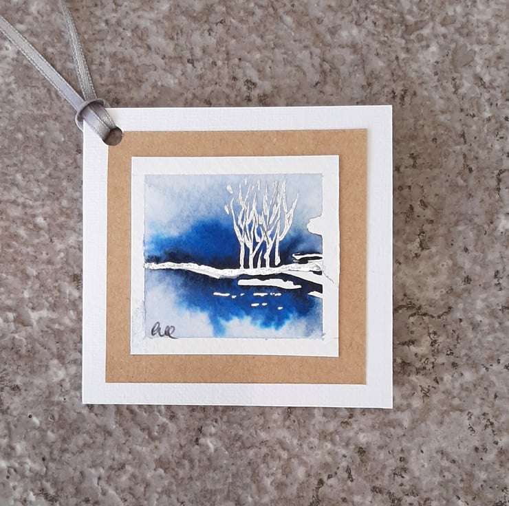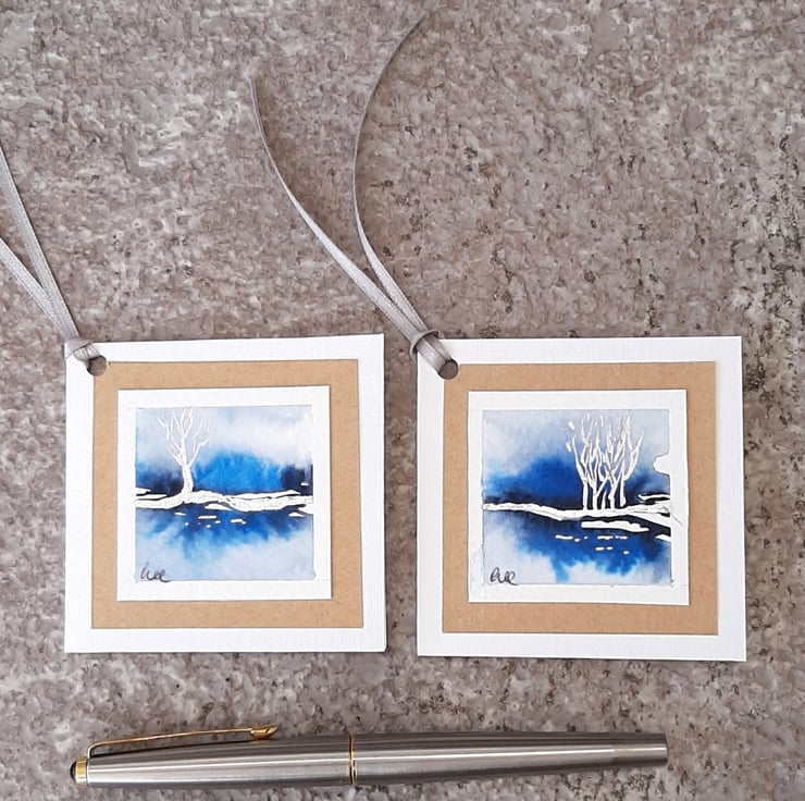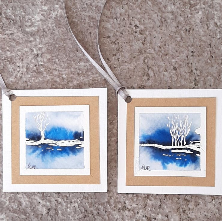 Sapphire Blue And Silver Handpainted Gift Tags. Pack Of Two. Card Style.