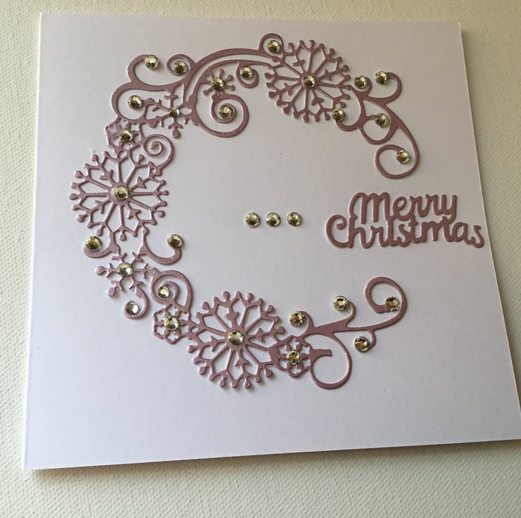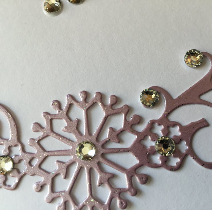 A pink swirl of snowflakes. The snowflakes are adorned with silver beads for that lovely sparkle.