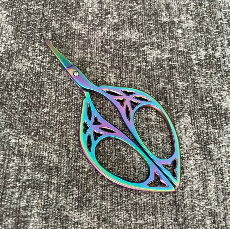 These cute scissors are made from high quality steel to complement the iridescent look. Ideal to have for craft projects including knitting, crochet, embroidery & cross stitch.