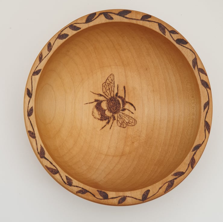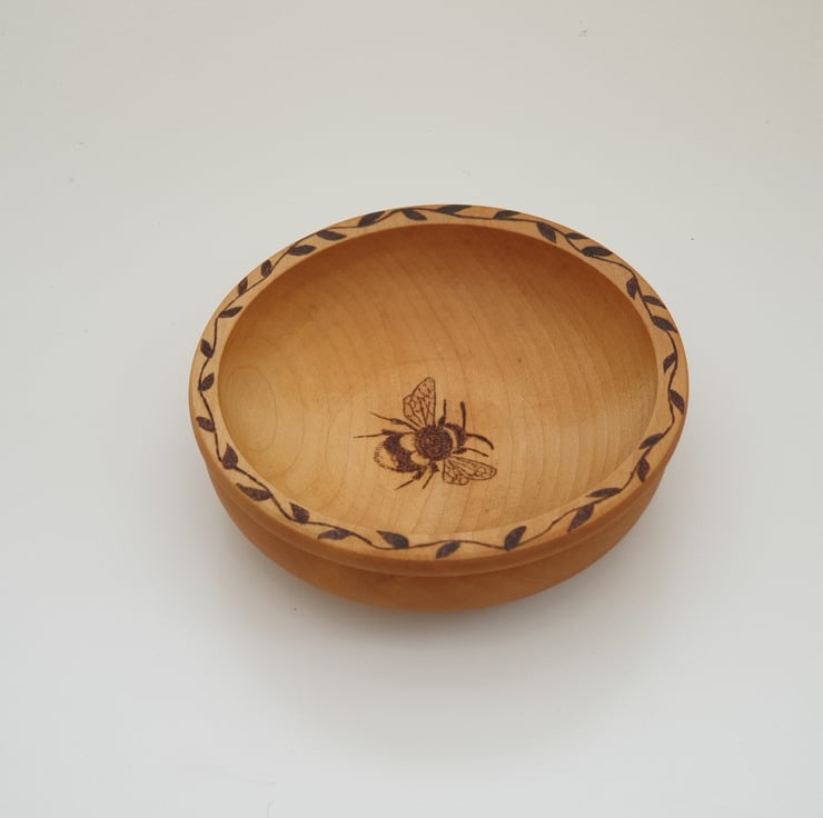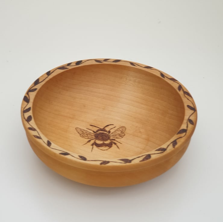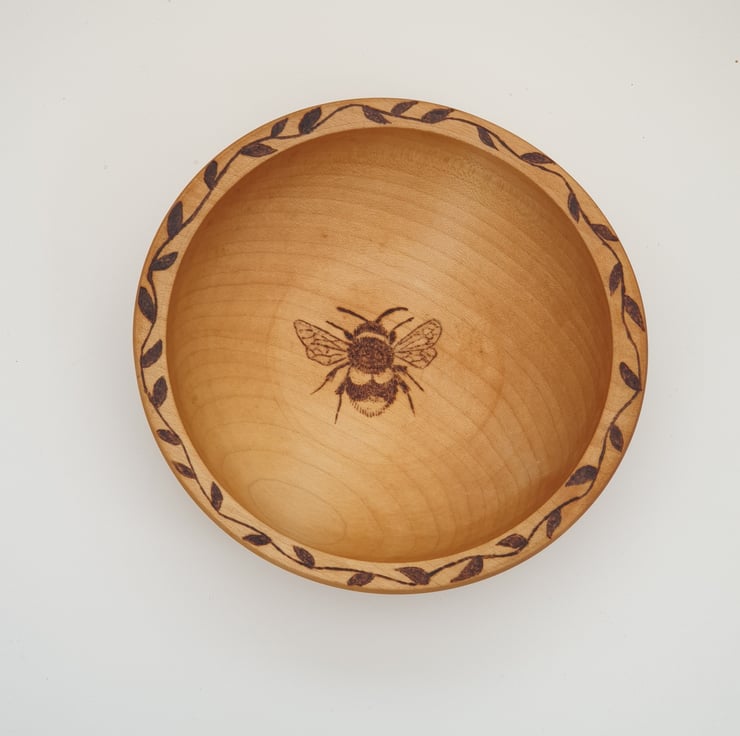 Beautiful wooden bowl which has been upcycled using the art of pyrography with a bee and leaf design. The bowl has been finished with wood oil to enhance the natural beauty of the wood. This pretty bowl would make a lovely addition to your home decor or make a fabulous gift for a wedding, anniversary, new house, birthday, etc.