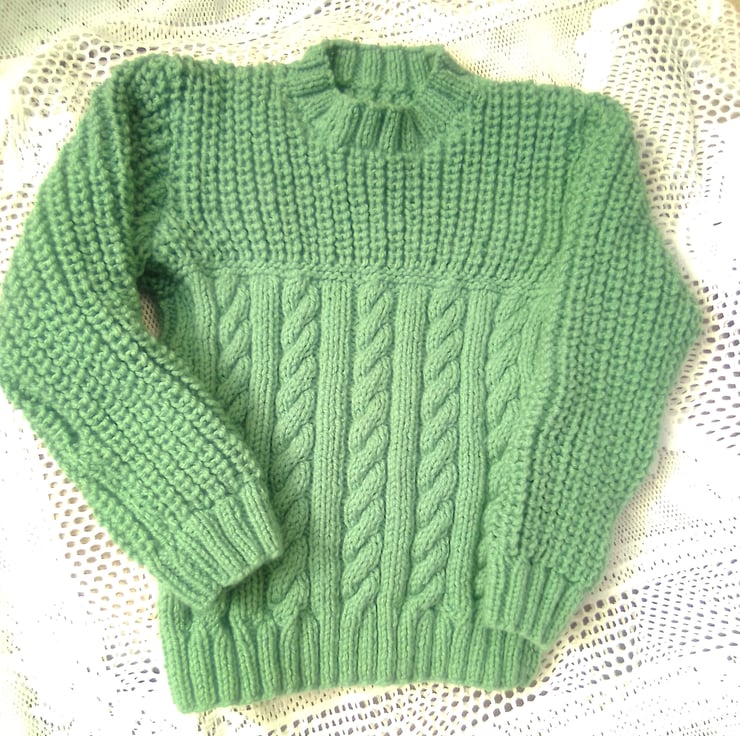 A lovely round neck cable and fisherman's rib patterned child's jumper. The jumper is not currently in stock but it can be made for you in a size and colour of your choice. Please state the colour required when you order. Available sizes are shown at the bottom of this listing. The processing time for this jumper will be approximately 1 - 2 weeks to produce and post to you.