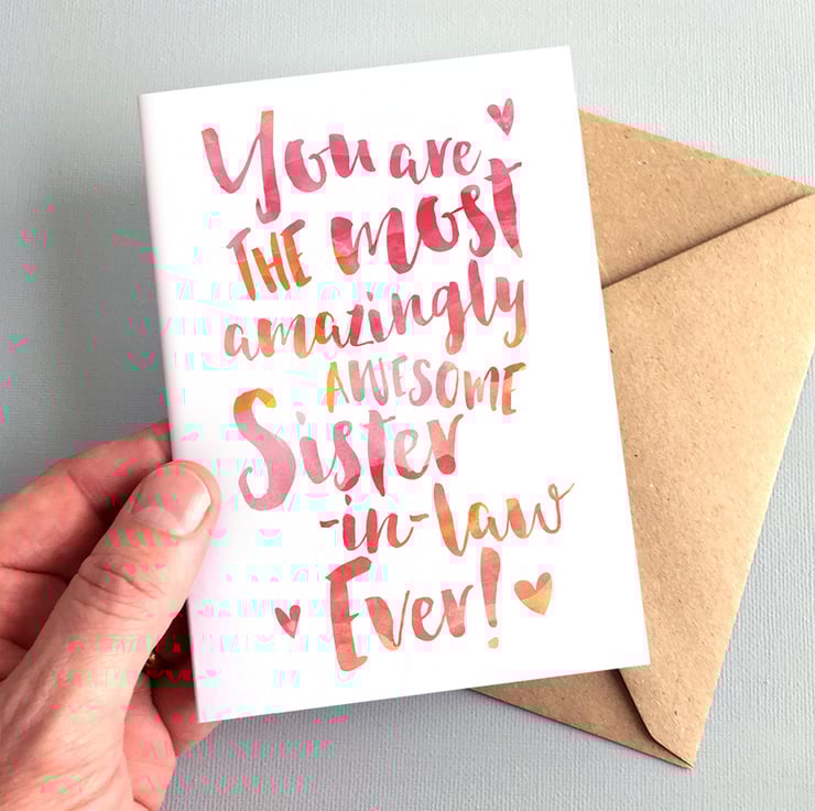 An awesomely amazing handmade eco-friendly A6 card for your amazingly awesome sister-in-law! Ideal for birthdays, thank-yous or just to say hello!