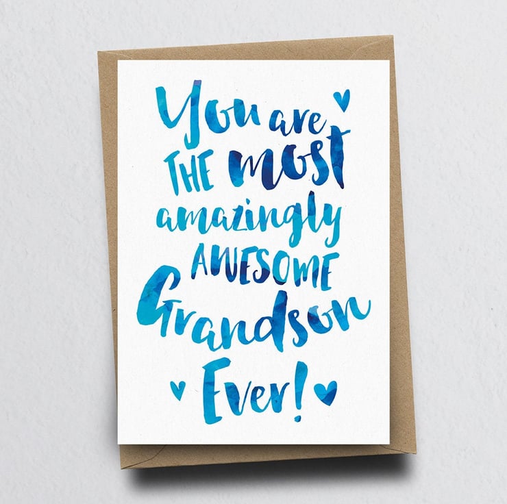 An amazingly awesome A6 handmade eco-friendly card for your amazingly awesome grandson! Suitable for any age, this card is ideal for birthdays, thank-yous or just to say hello!