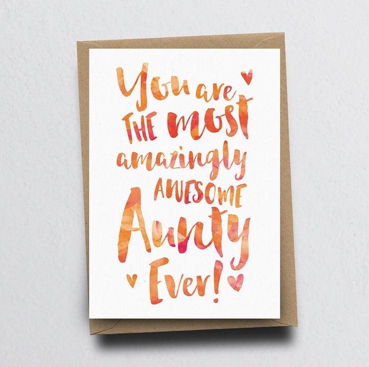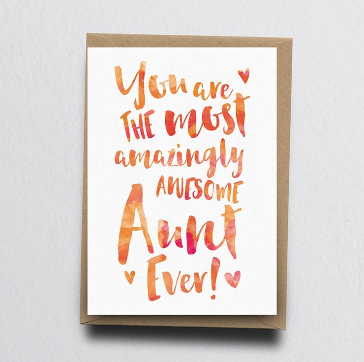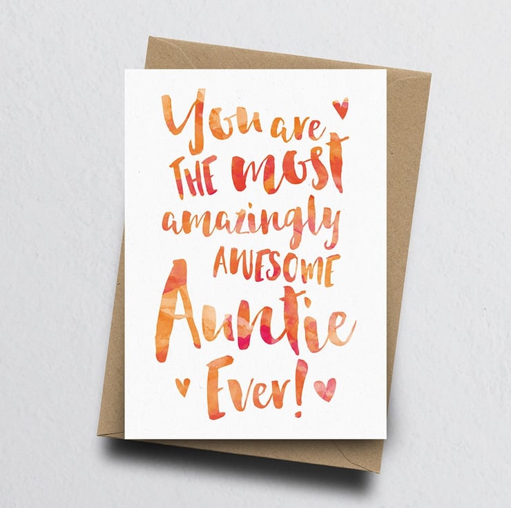 An amazingly awesome eco-friendly handmade A6 card for your amazingly awesome auntie! This card is ideal for birthdays, thank-yous or just to say hello!